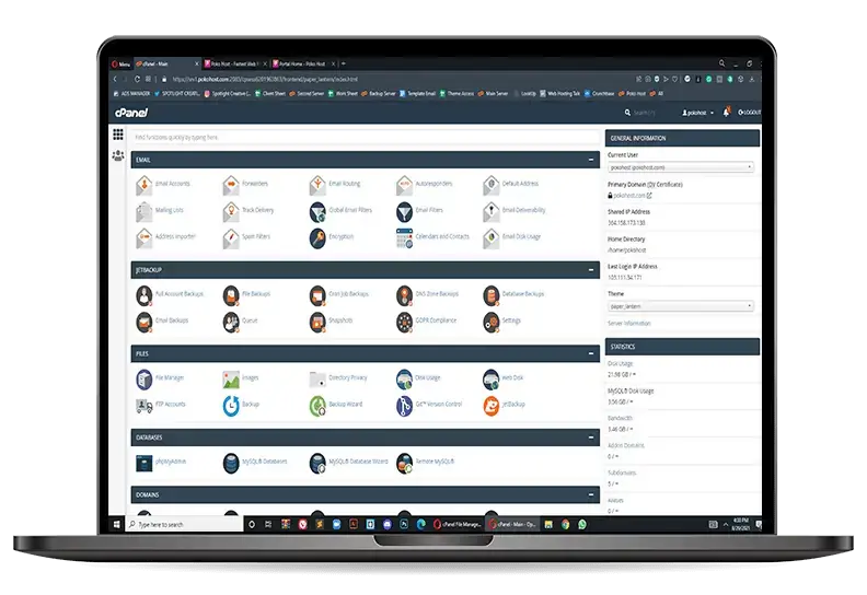 Easy to navigate control panel, everything is super smooth. Create your website in a minute. Thanks to our advanced web builder software that comes with Cpanel as built in feature.